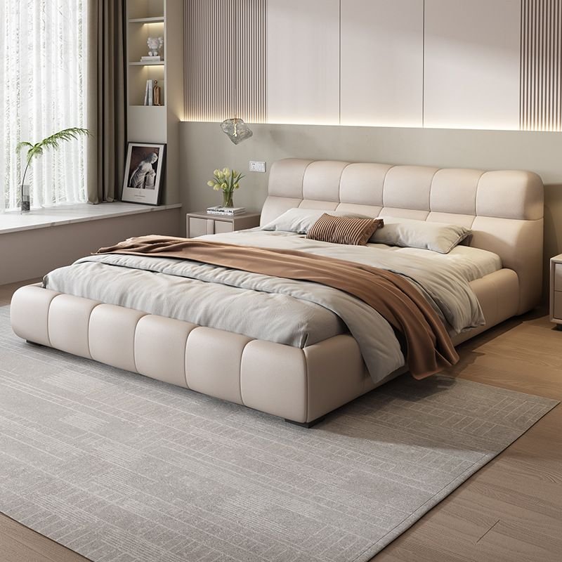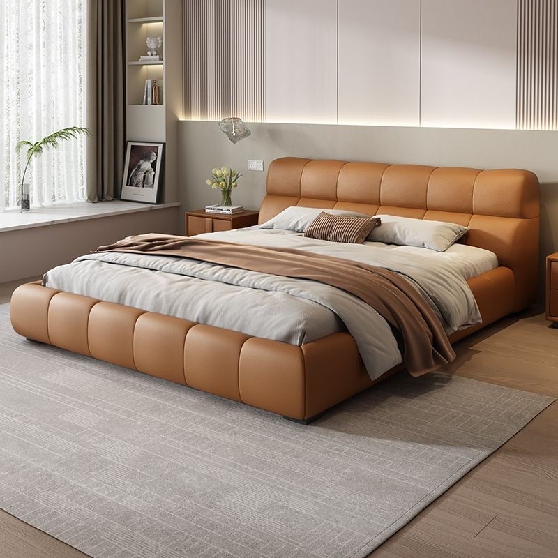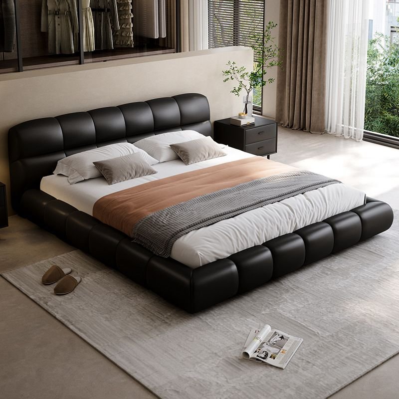 เตียงนอน หุ้มหนังเทียม พร้อมหัวเตียงเย็บบุลอน