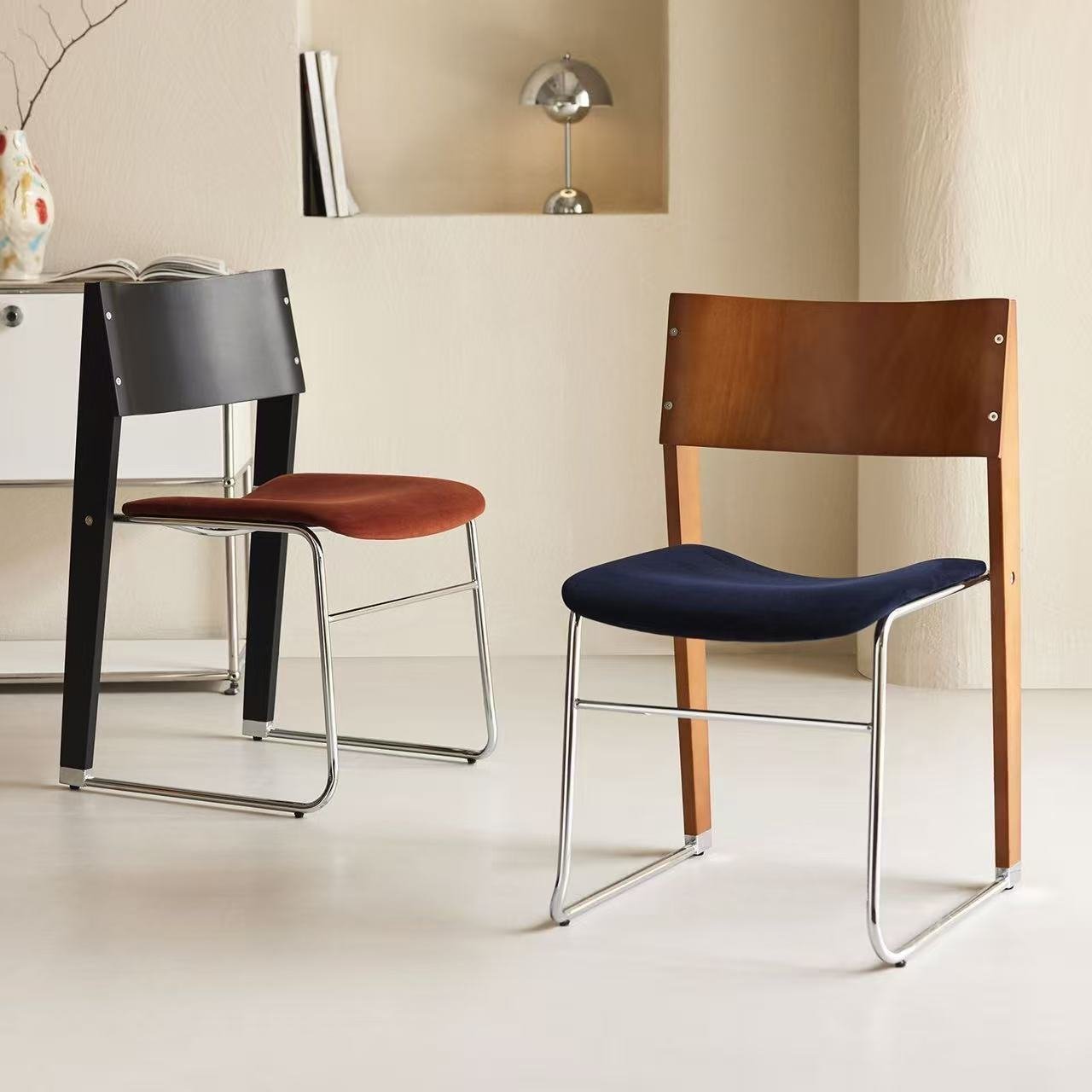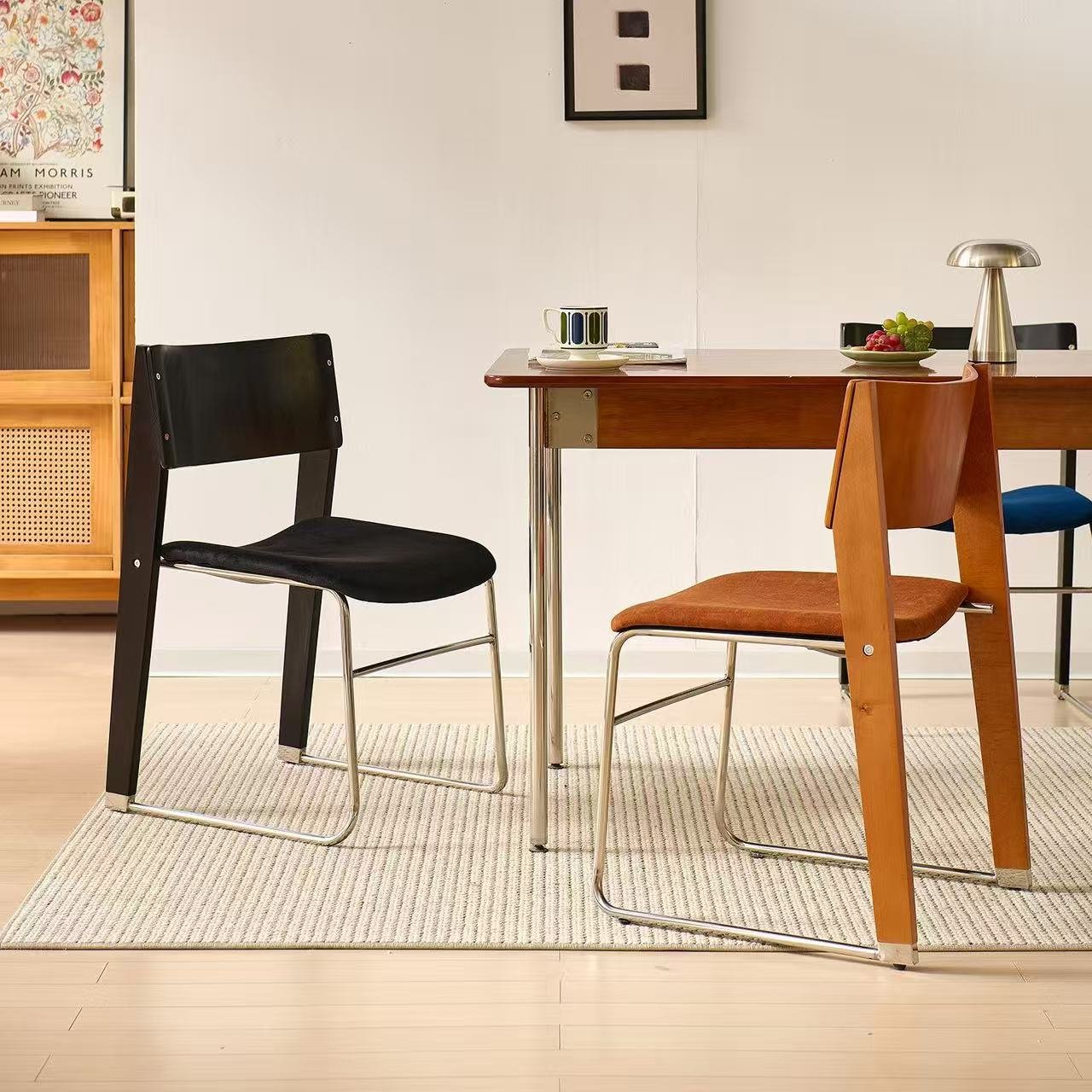 เก้าอี้ไม้ ดีไซน์ผสมขาเหล็กได้อย่างลงตัว ใช้เป็นเก้าอี้ทำงาน เก้าอี้กินข้าว เก้าอี้ต้อนรับ เก้าอี้พักคอย ฯลฯ เบาะนั่งบุผ้านุ่มสบาย